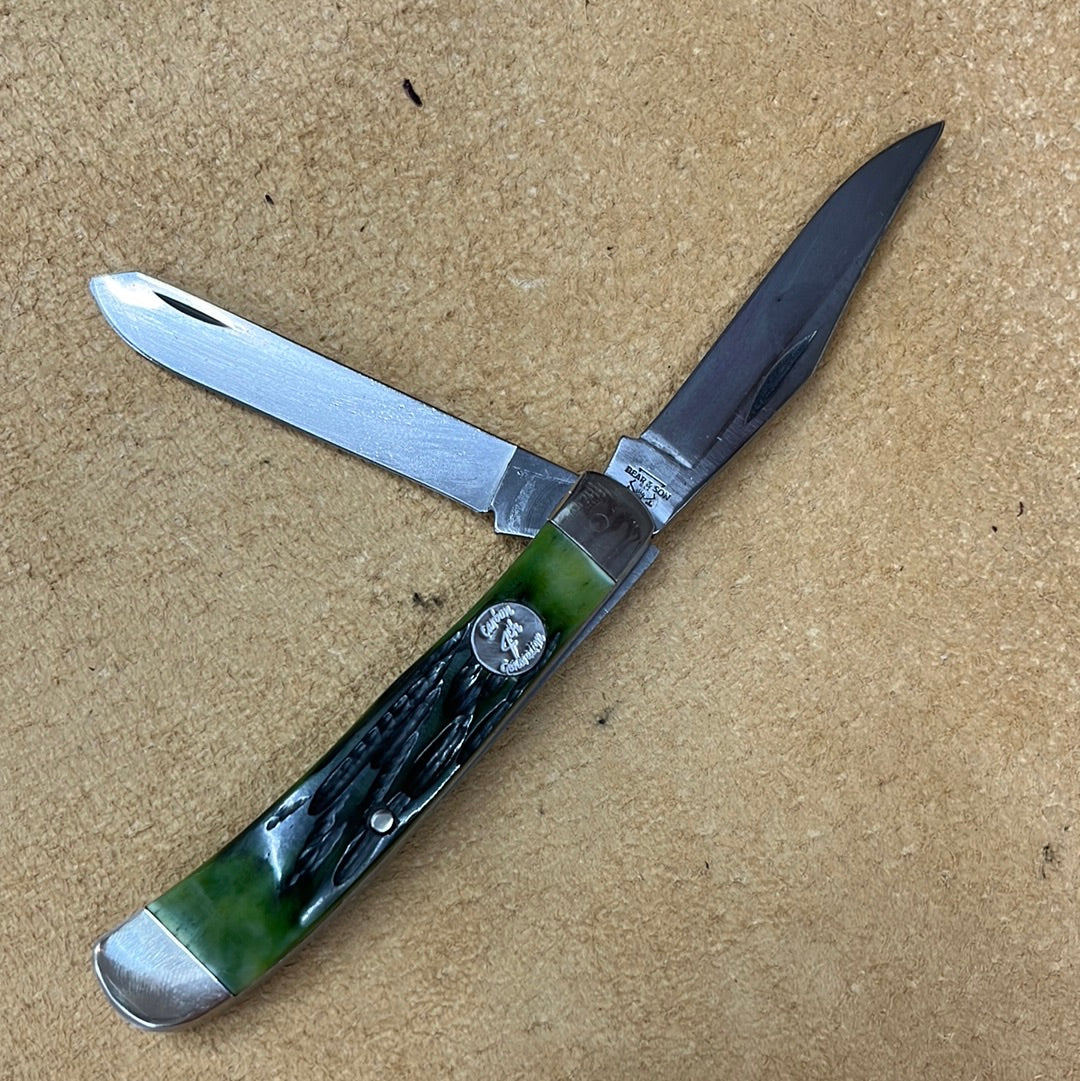 Bear and son knife with green and black handles. Closed is 4 inches open is 7 inches.