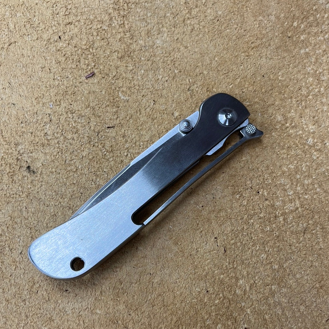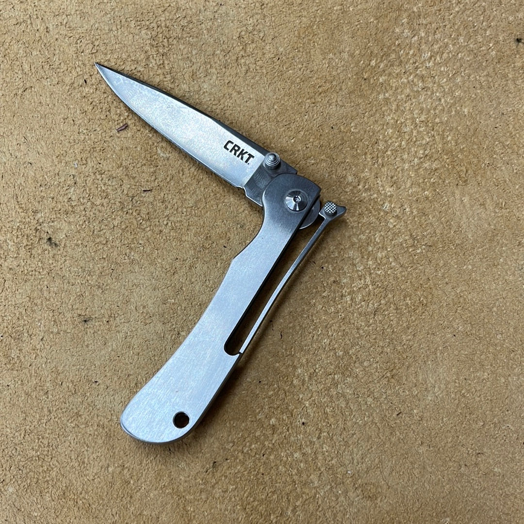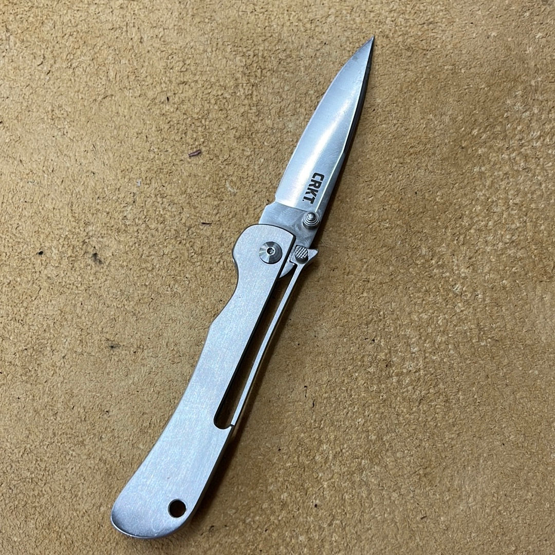CRKT knife with clip. Closed is 4.25 inches open is 7.5 inches