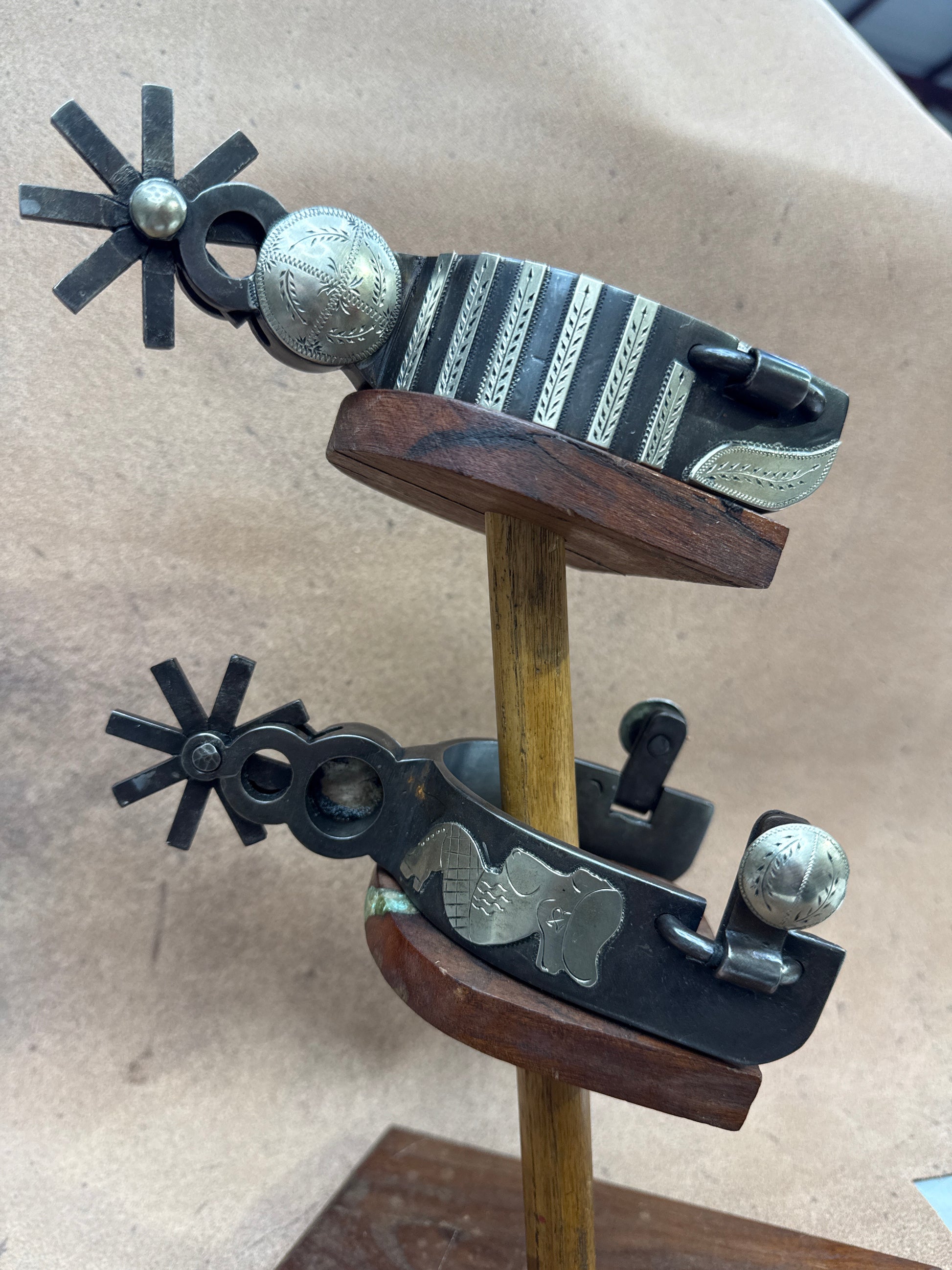 Double mounted Chihuahuas spurs by Dan Conway