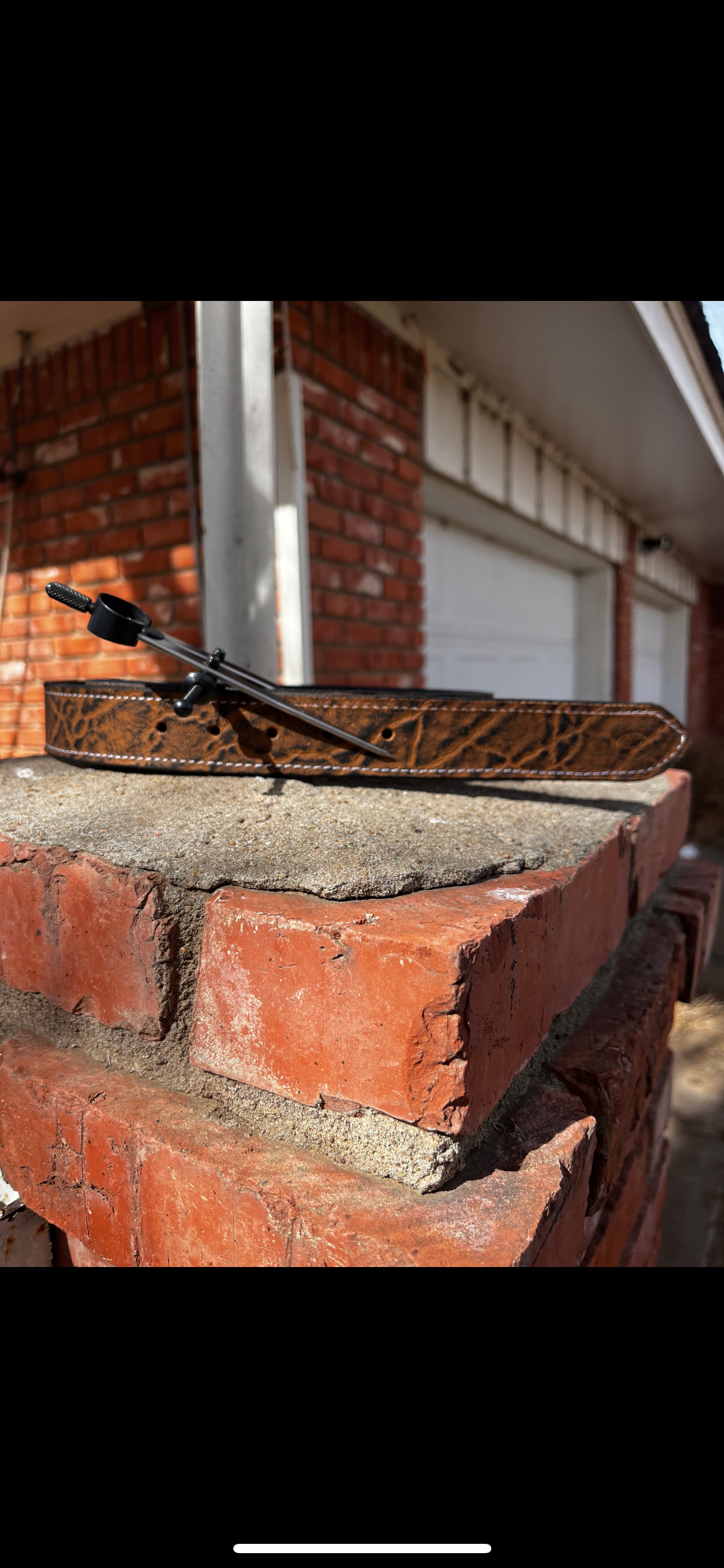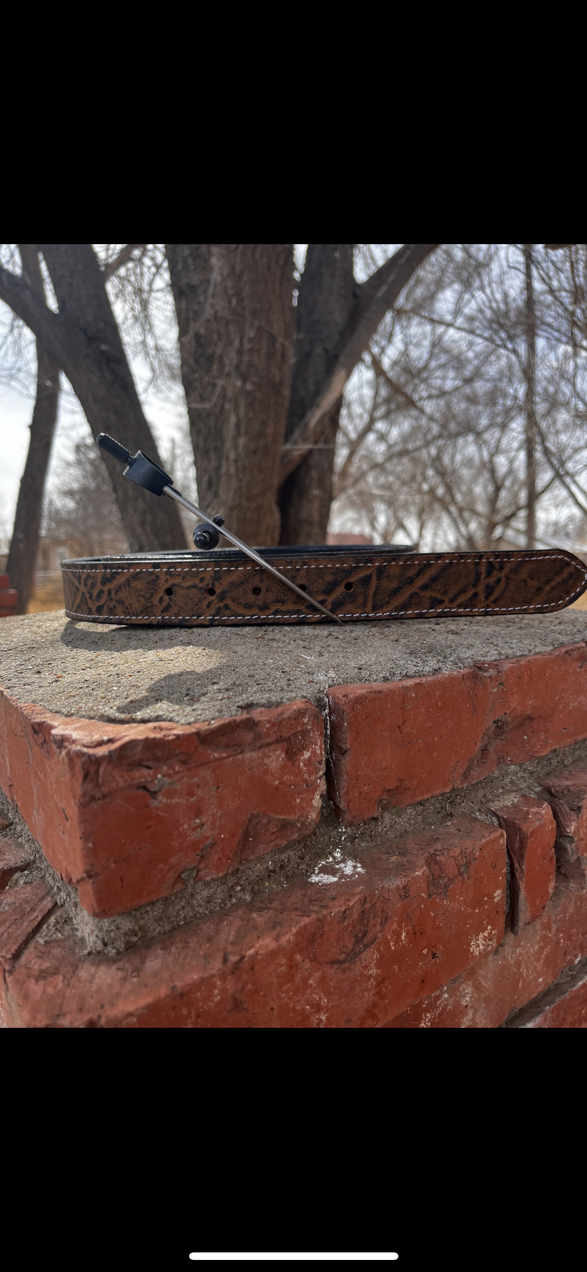 Elephant print belt, measure from bend to middle hole is 40 inches, from bend to tip 48 inches.