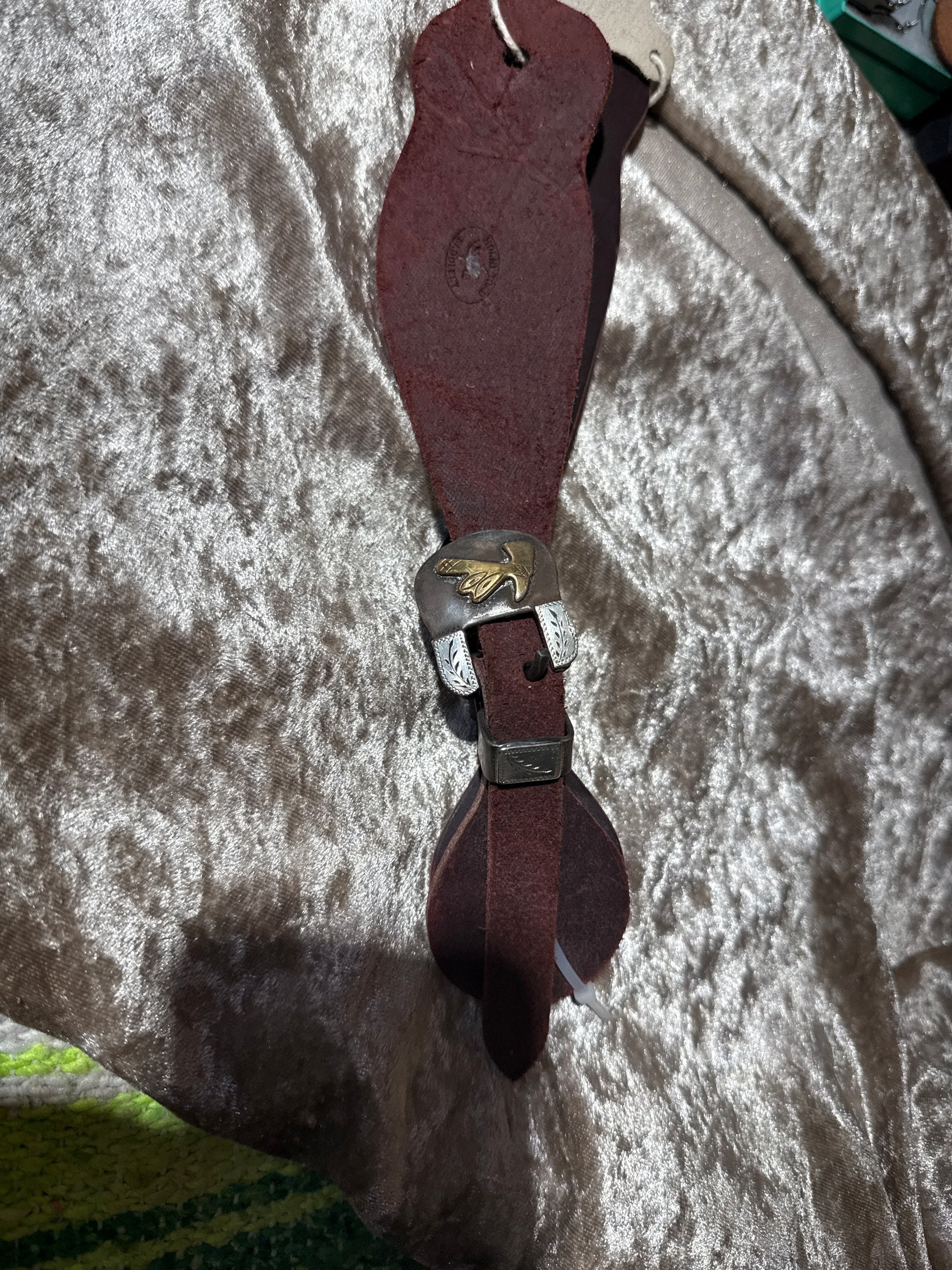 Handmade spur straps made by hornytoad saddlery with DConway buckles