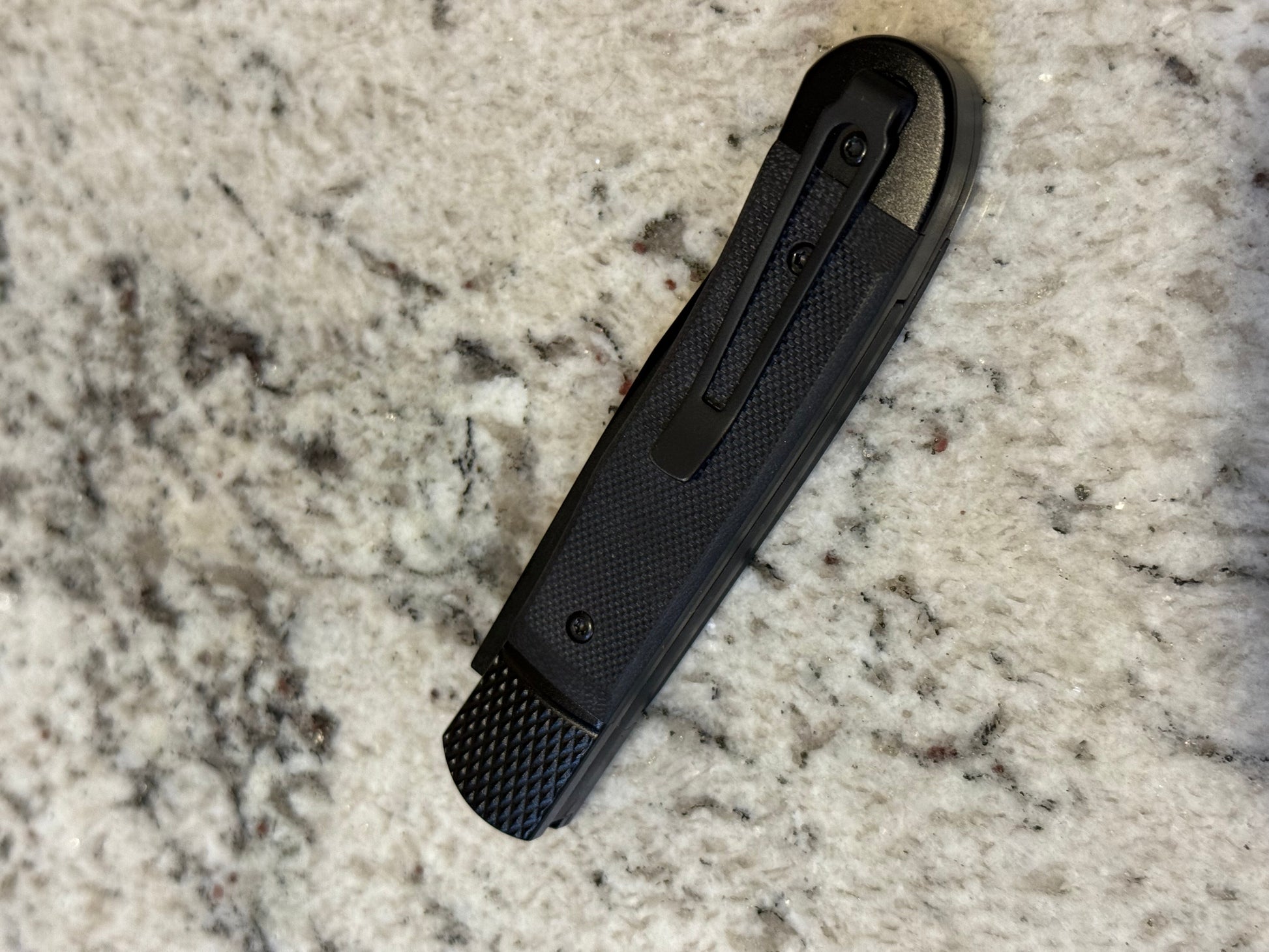 Cobratec knife. This knife is the perfect everyday carry. Closes measures 4 1/4 inches closes and 7 1/2 inches open.